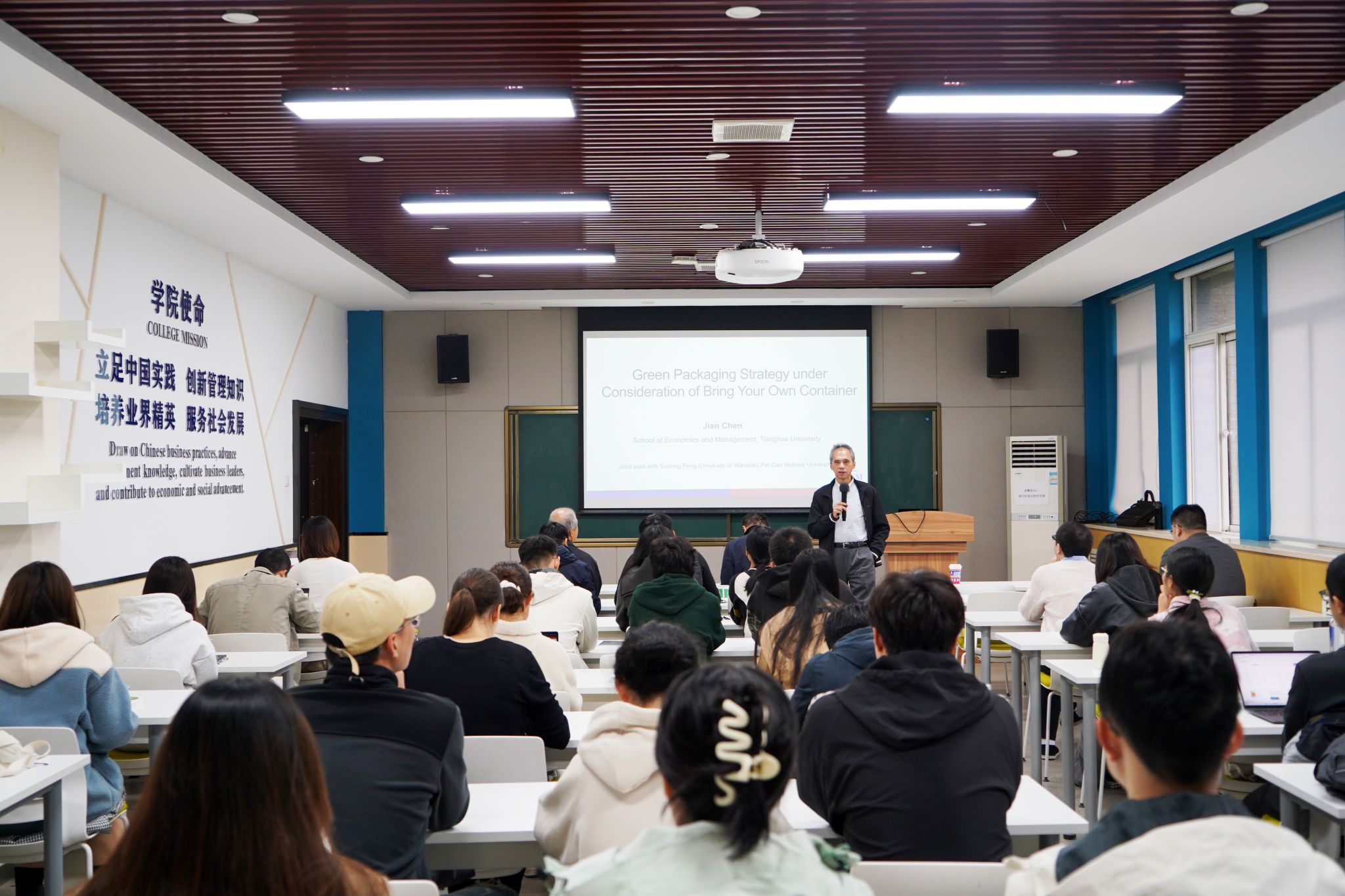 2024年11月4日上午,应新葡的京集团35222vip邀请,清华大学陈剑教授来学院开展学术交流,于我院214会议室作了题为 “Green Disposable Packaging Strategy under Consideration of Bring-Your-Own-Container(考虑自带容器的绿色一次性包装策略)”的学术报告。会议由刘晨光教授主持,新葡的京集团35222vip部分教师和研究生参与。
