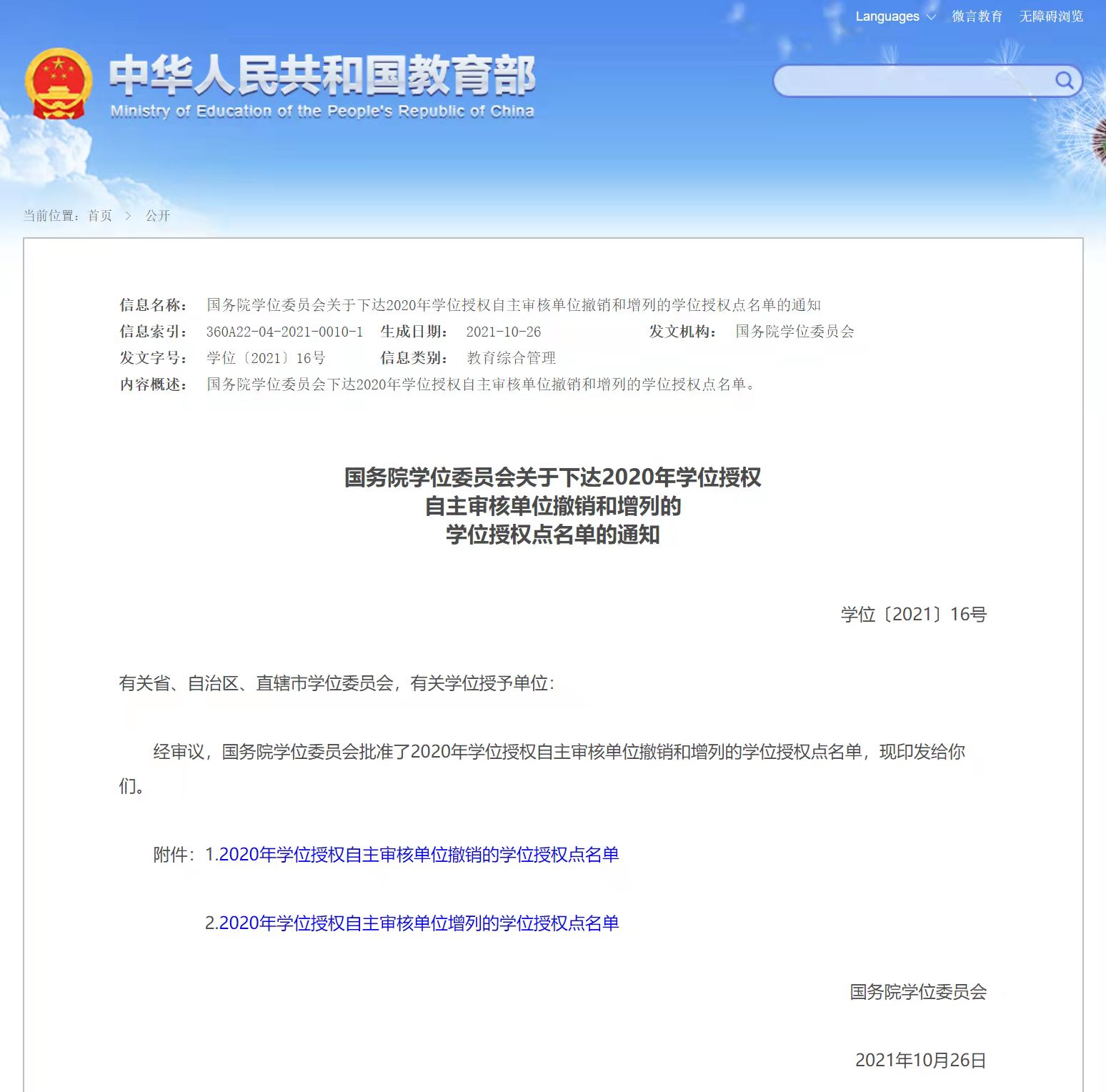 近日,国务院学位委员会印发《关于下达2020年学位授权自主审核单位撤销和增列的学位授权点名单的通知》(学位[2021]16号),经国务院学位委员会审议批准,新葡的京集团35222vip成功增列工商管理一级学科博士学位授权点,形成管理科学与工程学科、工商管理学科“双轮驱动”发展的新格局。