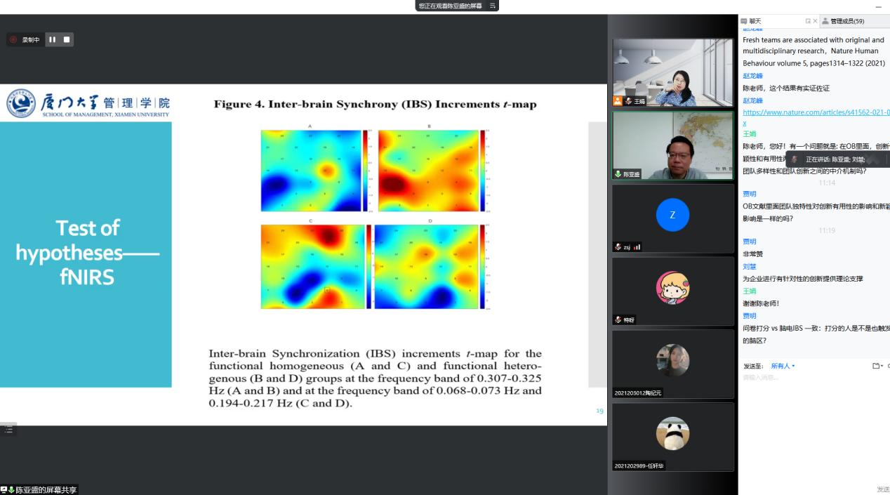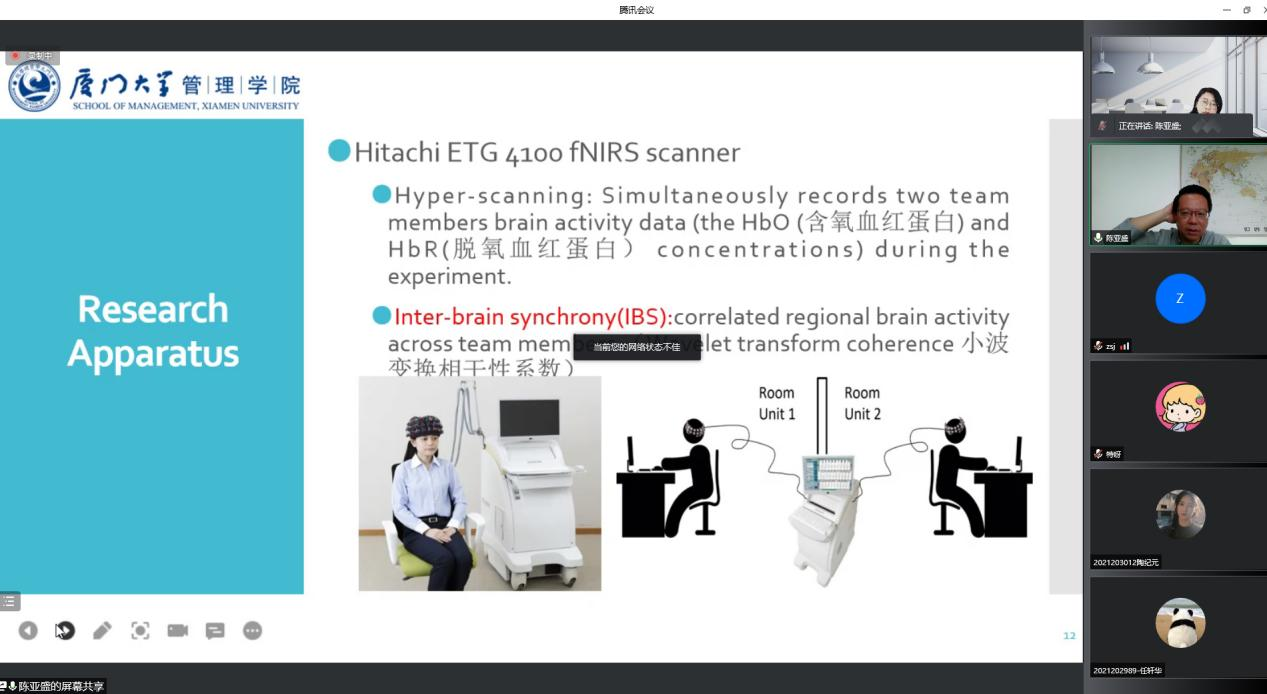 5月13日上午10时,应新葡的京集团35222vip邀请,厦门大学陈亚盛教授作了题为“专业技能多样性对虚拟团队创造力的影响——一项基于功能性近红外超扫描的实验”的报告,报告会由新葡的京集团35222vip副教授王娟主持,校内外百余名师生参与报告会。