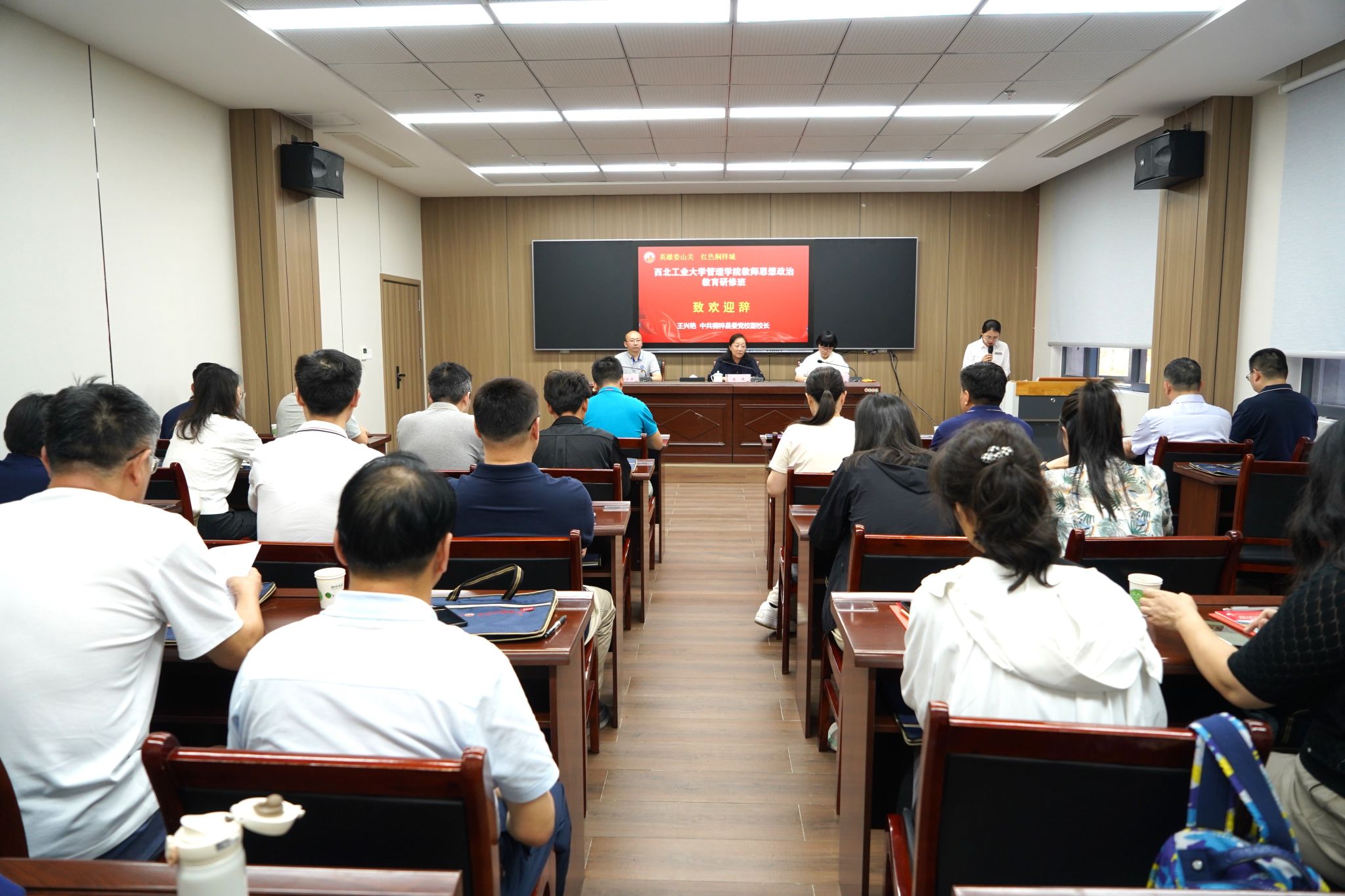 7月23日,队伍抵达红色圣地、转折之城——贵州遵义。开班仪式上,桐梓县委党校副校长王兴艳对全体学员的到来表示热烈欢迎,并介绍了当地近年来党性教育开展情况。学院党委书记张爽作动员讲话,她强调了此行的目的和意义,并对大家提出学习要求。随后,张爽和王兴艳共同向研修班授班旗。