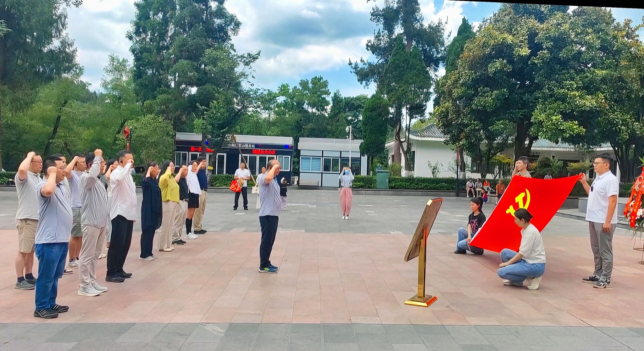 下午,学员们来到遵义红军烈士陵园瞻仰参观。在革命烈士纪念碑前,全体学员于纪念碑前庄严肃立,向为民族解放和人民革命事业英勇献身的先烈鞠躬默哀并敬献花篮。在郭云涛副院长的带领,大家面向烈士纪念碑紧握右拳,重温入党誓词。