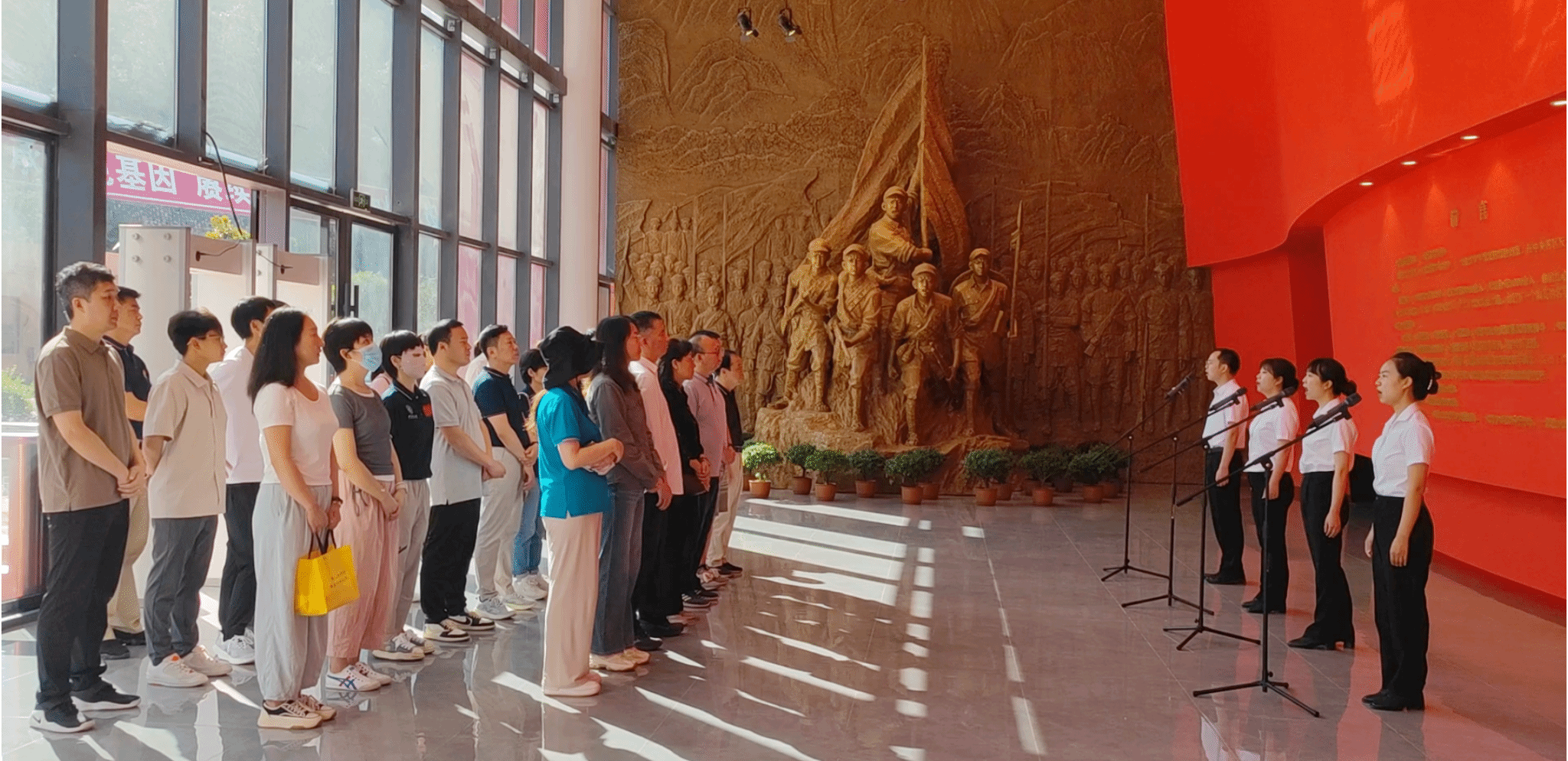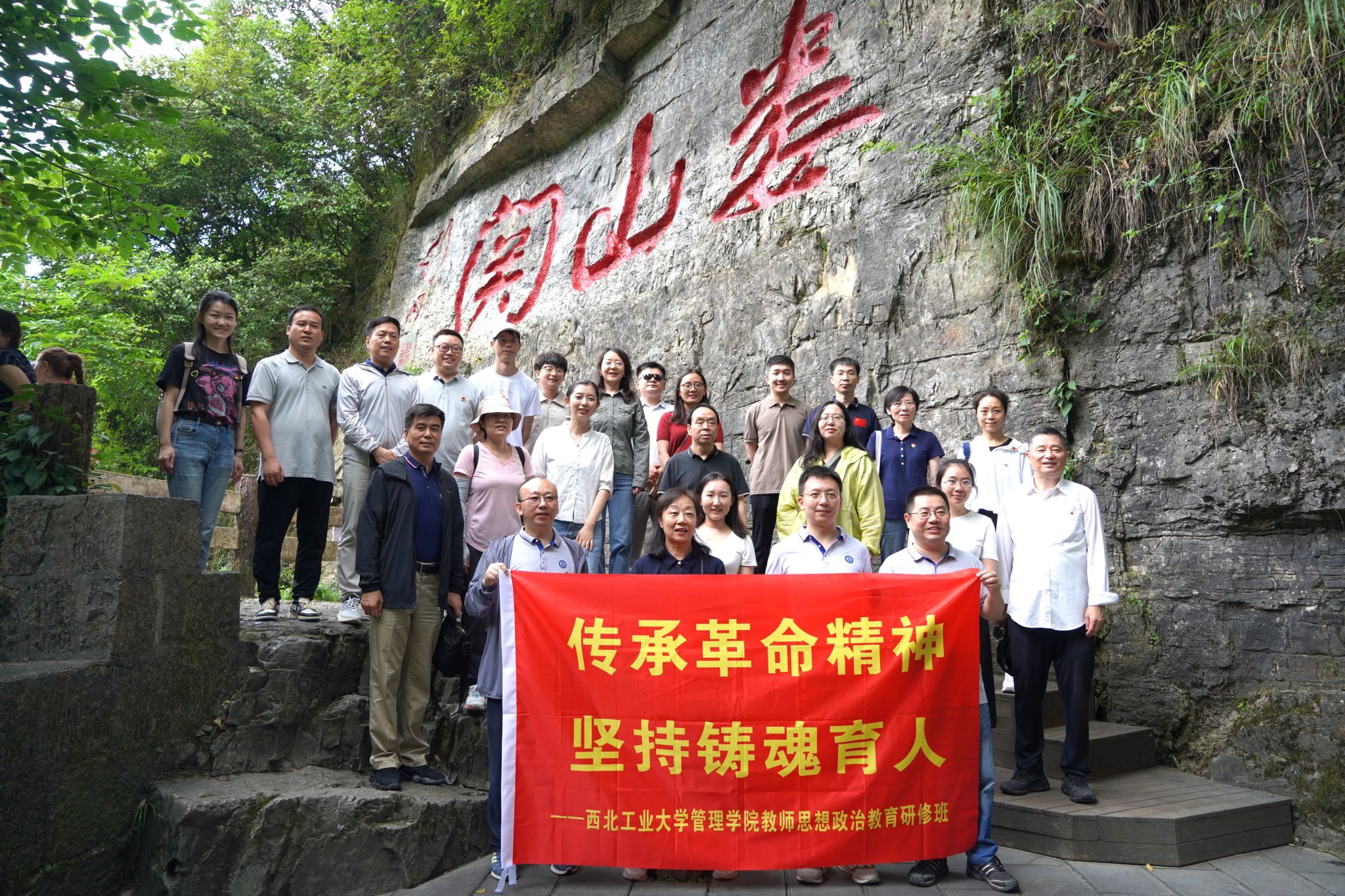 随后,大家集体前往娄山关战地遗址参观学习。娄山关北距巴蜀,南扼黔桂,为黔北咽喉,兵家必争之地,作为红军长征途中的重要战场,见证了红军不畏艰难、英勇作战的历史。在娄山关脚下,大家集体朗诵毛主席《忆秦娥·娄山关》,切身感受诗中所描绘的宏伟景色与磅礴气势。沿着红军曾经的足迹,倾听讲解员介绍当年红军战士们面对重重困难仍奋勇前行的故事,参观红军与国民党军队激战时留下的战壕与坑洼。在娄山关红军战斗遗址陈列馆,通过大量珍贵的历史照片、文物、雕塑等艺术手段,大家多角度、全方位地回顾了当年娄山关战斗的历史背景、战斗状况和将士风范,共同回顾那段波澜壮阔的革命岁月,深刻体会共产党人矢志不渝的革命热情和崇高的理想信念。