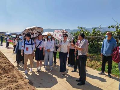 伴随六月的阳光,学院师生来到了今天活动的第一站——周至县猕猴桃试验站。大家走进果园,站长为大家讲解了猕猴桃的种植技术,回答了师生们提出的各种问题,在田间地头上了一场生动鲜活的劳动育人党课。随后双方进行了座谈交流,站长回顾了周至猕猴桃产业发展的历程,从一粒种子到一个产业,从品种单一到多样化种植,从初级农副产品到地标品牌,周至猕猴桃标准化、品牌化、国际化进程不断加速,成为引领乡村振兴的特色优势产业和农民增收致富的重要载体。