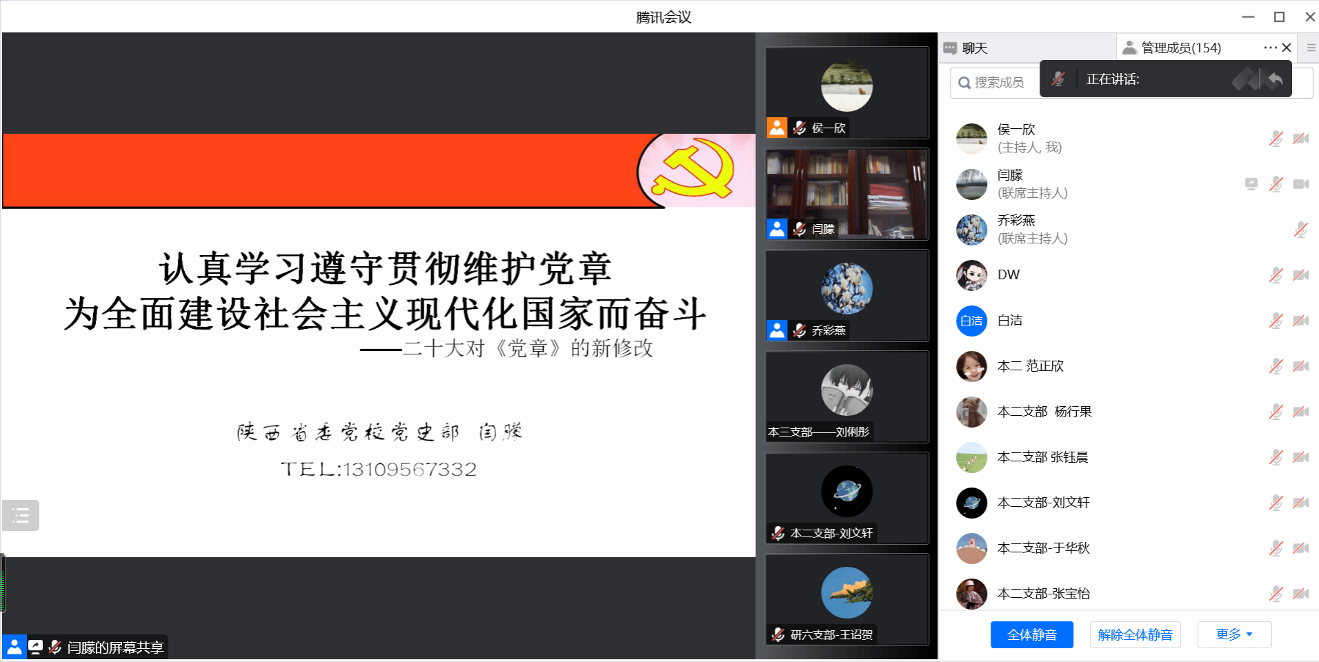 11月30日,新葡的京集团35222vip“学习宣传贯彻党的二十大精神”专家辅导报告迎来第三讲,邀请陕西省委党校闫朦教授对《中国共产党章程(修正案)》进行解读。学院全体师生党员线上聆听学习,报告由学院党委书记乔彩燕主持。