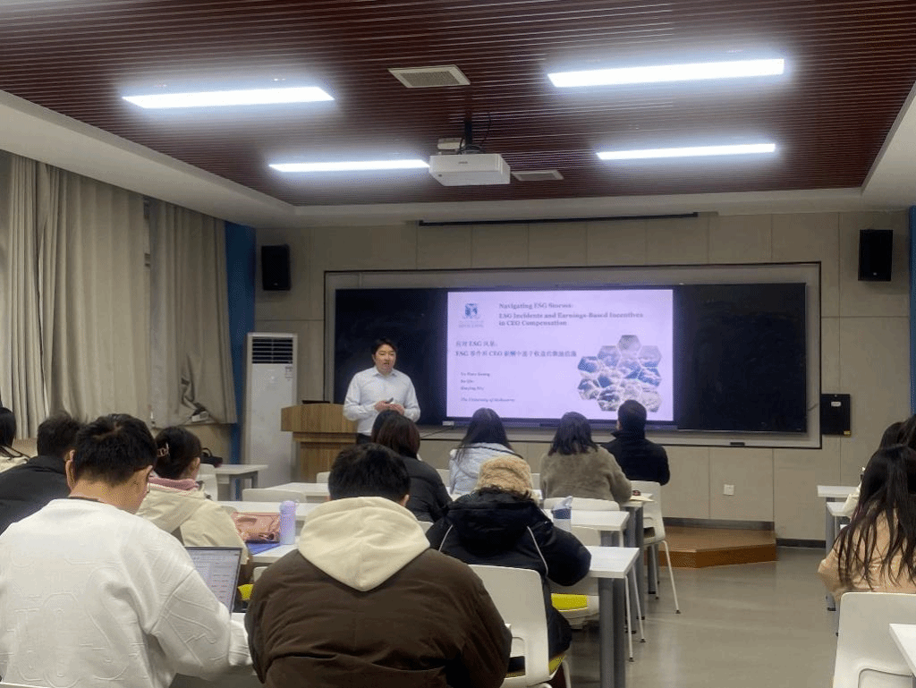 2024年1月12日下午,应新葡的京集团35222vip邀请,澳大利亚墨尔本大学商业与经济学院秦波副教授来学院开展学术交流,于我院210报告厅作了题为“应对ESG风暴:ESG事件和CEO薪酬中基于收益的激励措施”的学术讲座。本次讲座由会计系主任苏坤教授主持,新葡的京集团35222vip会计系部分教师和研究生参与。