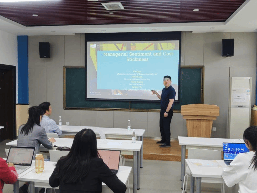 2024年4月25日上午,应新葡的京集团35222vip邀请,香港城市大学商学院会计系余扬新教授在学院214教室作了题为“Managerial Sentiment on Firms’ cost Stickiness”的学术报告会,讲座由会计系教师封华主持,学院30余位同学和会计系、工商系10位老师参加。