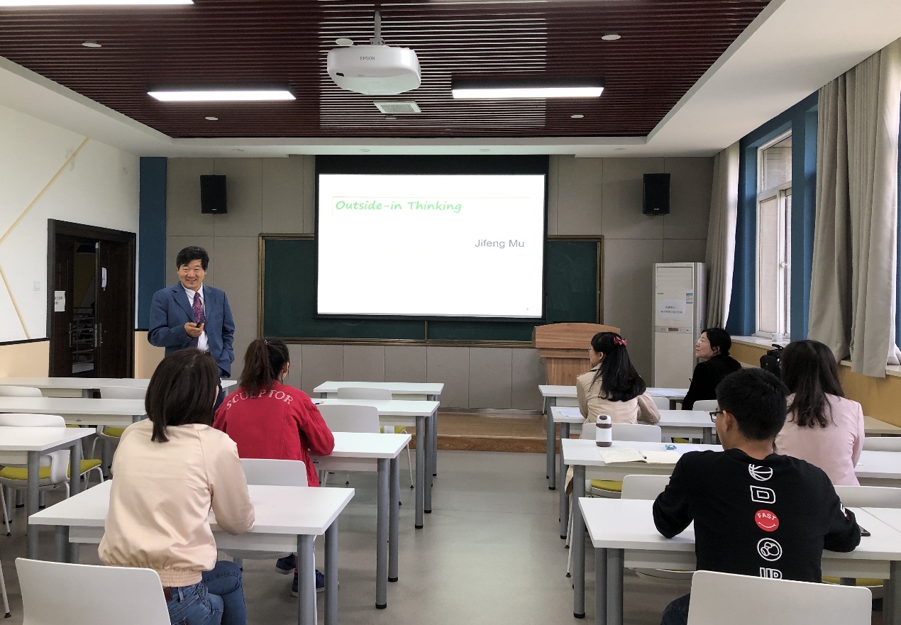 2019年5月10日上午,美国阿拉巴马州A&M大学Jifeng Mu教授应邀在我院214报告厅做了题为“Outside-in Thinking”的学术报告。报告会由常玉副教授主持,来自新葡的京集团35222vip的博、硕士研究生以及部分教师参加了此次报告会。