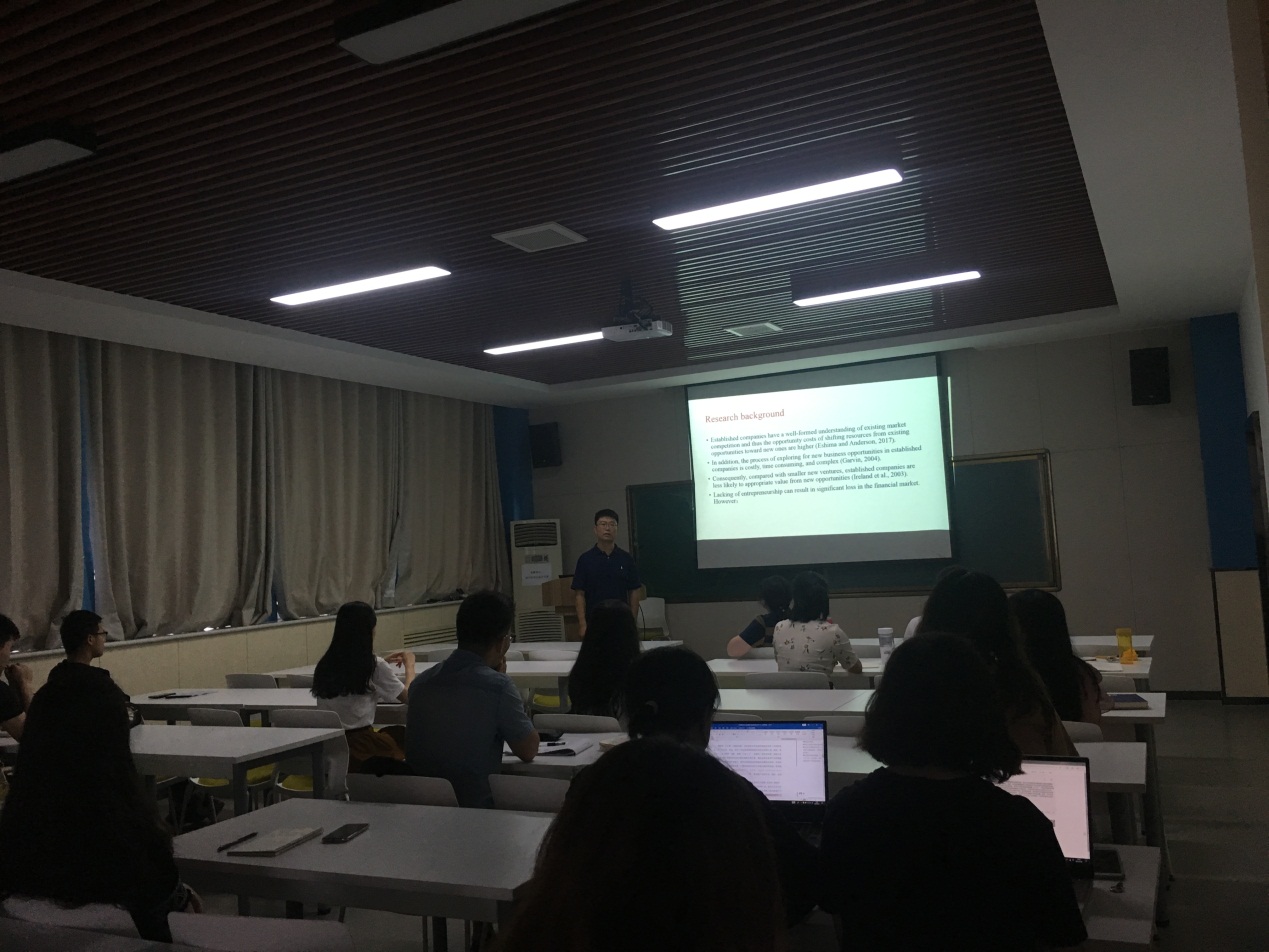 7月4日,美国西弗吉利亚大学王新春助理教授在我院举办了题为“Nothing Ventured? Analyst Reaction to Entrepreneurial Orientation in Established Companies”的报告。报告会由新葡的京集团35222vip常玉教授主持,来自新葡的京集团35222vip的本科生和硕士生参加了此次报告会。