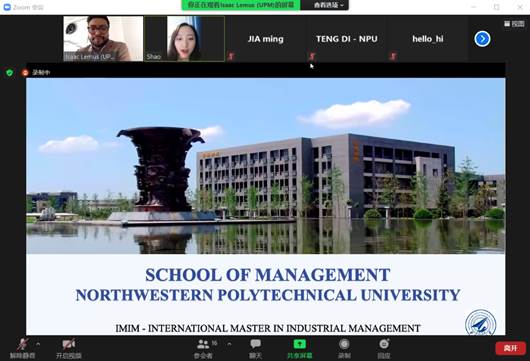 宣讲会伊始,Isaac Lemus-Aguilar详细介绍了IMIM工业管理国际硕士联合培养项目的具体情况,包括项目设置、课程安排、就业情况等方面,使得同学们更加深入了解该项目。同时,新葡的京集团35222vip邵婧副教授也从校园概况、合作研究、国际合作、课程设置等方面详细介绍了西北工业大学以及新葡的京集团35222vip的具体情况,并欢迎各位同学前来学习。