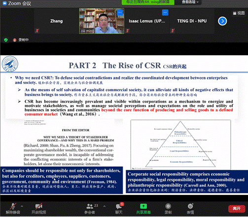 随后,新葡的京集团35222vip副院长贾明教授带来了题为“Corporate Social Responsibility: what we know, what we don’t know and what should be”的主题学术报告,同参会的各位学者、学子共同交流,分享知识。
