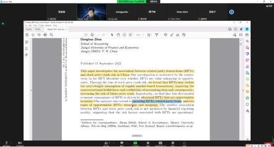 应新葡的京集团35222vip车阿大教授、苏坤教授邀请,澳大利亚麦考瑞大学姜海燕副教授于2022年7月20日至2022年7月30日为我校本科生、研究生开设了《会计研究方法论》暑期学堂课程。本次课程全程以在线形式授课,苏坤教授担任课程负责人,全校多名学生参加。课程总时长为32个学时。