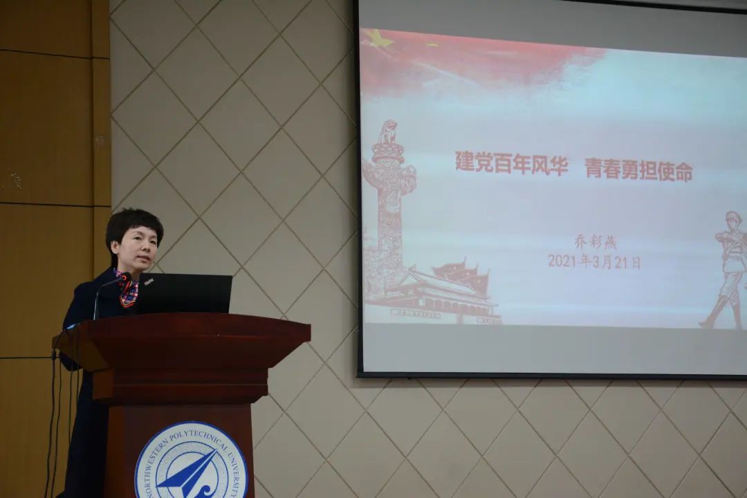 两位同学分享过后,新葡的京集团35222vip党委书记乔彩燕以“建党百年风华,青春勇担使命”为主题,进行党课的传授,首先讲到党的百年历程,从一艘南湖小船到世界上第一大政党,这是筚路蓝缕、披荆斩棘、艰苦创业、砥砺前行的一百年。这百年中,我国取得的历史性成就证明,中国共产党所具有的无比坚强的领导力,是中国人民最可靠的主心骨。接着,她从“有远大理想追求”、“有科学理论指导”、“有选贤任能机制”等六个方面介绍了中国共产党的优秀品质,为中国共产党为什么能取得如此大的成就做出了最好的解释。最后,乔彩燕书记对我们青年人提出了嘱托与要求,作为我校人,理想信念是核心,责任担当是关键。