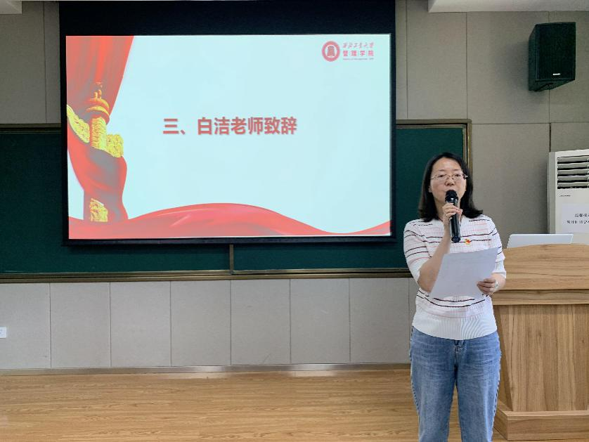 选手们演讲完之后,白洁老师对本次活动进行总结。做为新时代的青年党员学子,在建党百年关键节点,通过自己的视角,讲述百年党史中一张照片背后的党史故事,是一件很有意义的事情。本次活动紧紧围绕建党百年为主题,各位选手视角各具特色,故事内容丰富详实,宋振中等红色人物、红船精神等红色精神、《志愿军战歌》等红色歌曲、渣滓洞中的五星红旗、《悬崖之上》等红色影视无一不扣动在场各位的心弦。白洁老师希望同学们将学习党史做为一种自觉和习惯,学史明理、学史增信、学史崇德、学史力行,将学习党史的思考和力量,转化为实际行动,勇担时代责任和历史使命,为实现中华民族伟大复兴的中国梦而努力奋斗。