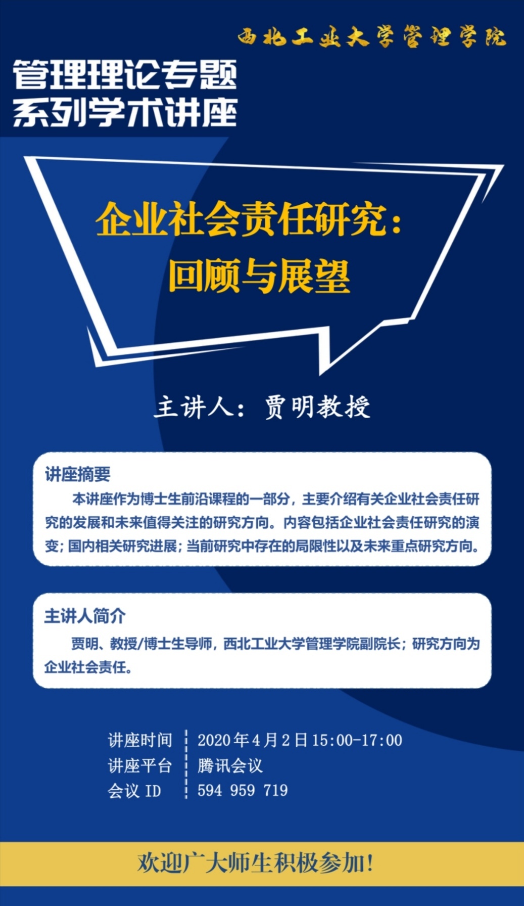 主讲人简介:贾明、教授/博士生导师,新葡的京集团35222vip副院长;研究方向为企业社会责任。