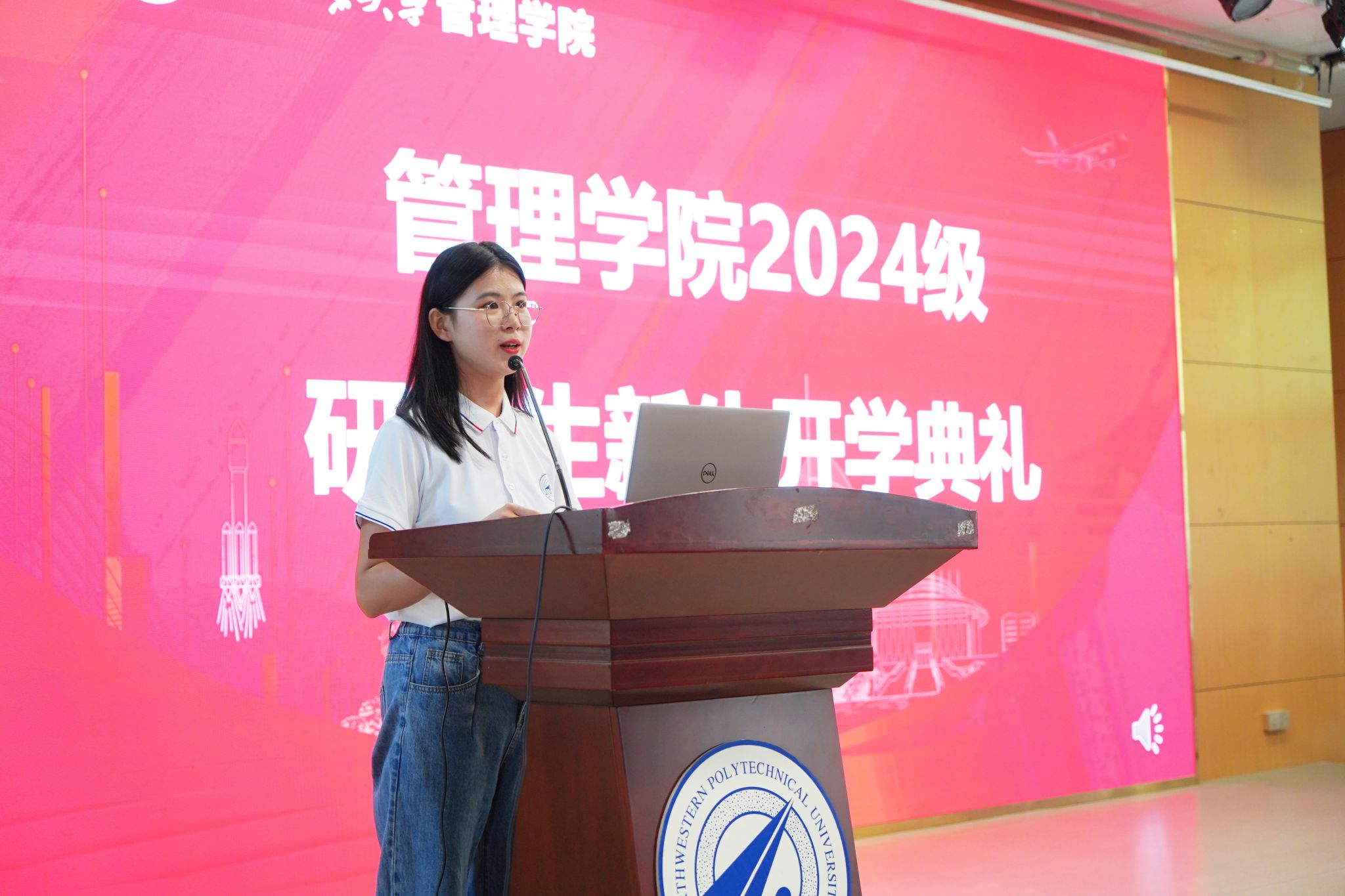 最后,工商管理专业李芙英代表新生发言。她回顾了自己在本科阶段的成长历程与收获,表达了对进入新葡的京集团35222vip继续深造的喜悦与激动。她从“坚定目标”“坚持理想”“坚守底线”三个方面分享了自己对研究生学习生涯的期待,并祝愿所有同学都能挖掘潜能,努力拼搏,实现梦想。
