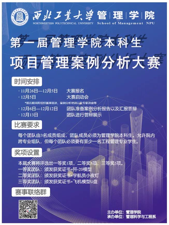 为激发广大学生学习项目管理理论,关注工程管理实践的热情,营造独立思考、自由探索、勇于创新的良好环境,新葡的京集团35222vip特主办了第一届本科生项目管理案例分析大赛,由管理科学与工程系承办。本次大赛自11月26日发布以来,得到了同学们的踊跃报名,一共有多达24支队伍报名参赛,经过激烈角逐,比赛于12月13日顺利落下帷幕。