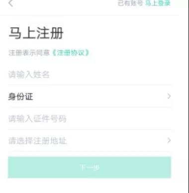 3. 按照要求填写姓名身份证等信息(注册地址填写陕西省西安市长安区)