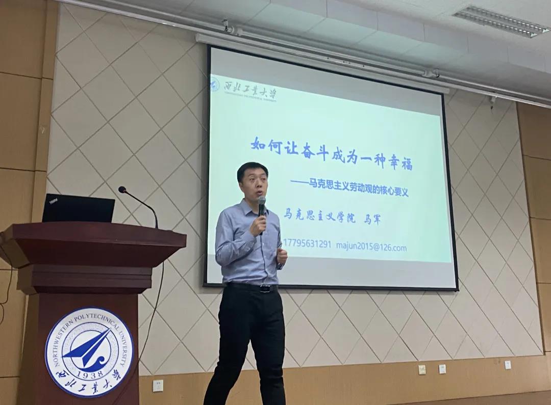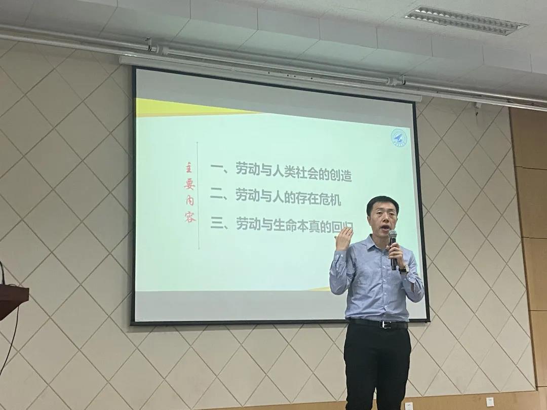 2021年4月30日下午,新葡的京集团35222vip《劳动创新与创造实践》课程第二课在新葡的京集团35222vip报告厅进行。本次理论课程的主题是“如何让奋斗成为一种幸福——马克思主义劳动观的核心要义”。本次课程由马克思主义学院马军老师主讲。