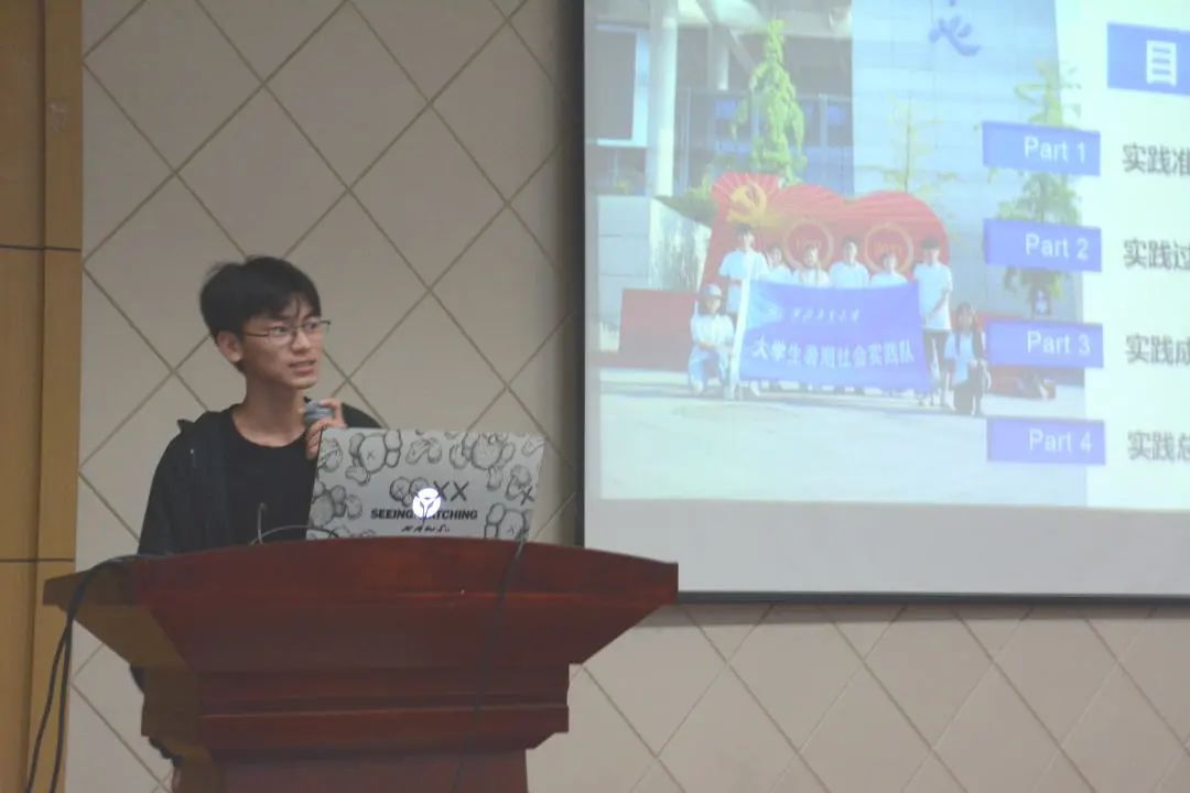 最后,林雨田同学进行了以“探寻工大印迹,展望国校振兴”为主题的暑期社会实践分享汇报。实践队通过走访结合座谈的调研模式,对中共一大二大纪念馆及会址等的红色革命遗址、我校太仓校区及长三角研究院、校友企业、外资企业等展开调研,围绕学校学科特色、重点工作、工大精神,到国防科工单位、装备基地、试验场所体验学习。