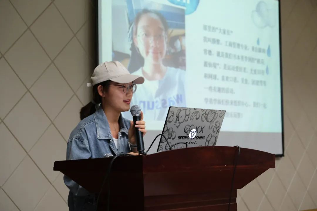 接着,苏斯杰讲到文体中心工作之余的部门日常,包括丰富多彩的团建活动、每逢佳节时的互赠礼物、学姐学长的幽默风趣。最后,文体中心诚挚向新生们发出邀请,期待同学们在这里闪闪发光。