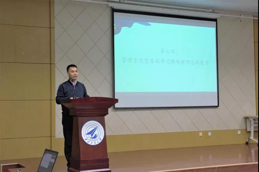 大会最后,由新葡的京集团35222vip党委副书记樊琳上台致辞。樊书记总结同学们的讲话内容,并提出三点期许,希望同学们坚持正确的政治方向,成为“对党忠诚、作风过硬、政治理想信念坚定”的青年学生骨干;坚持服务同学的宗旨,引导全体同学成为德智体美劳全面发展的新时代优秀人才;加强自身建设,增强学生的“政治性、先进性、群众性”,强化自身的群众意识、责任意识和服务意识,真正成为大家的学习榜样。樊琳老师引用习近平总书记对青年大学生的讲话,激励我们增强自己的志气骨气和底气,表达了对管院团委、学生会成员的殷切期望,不禁令在场同学热血沸腾、斗志满满。