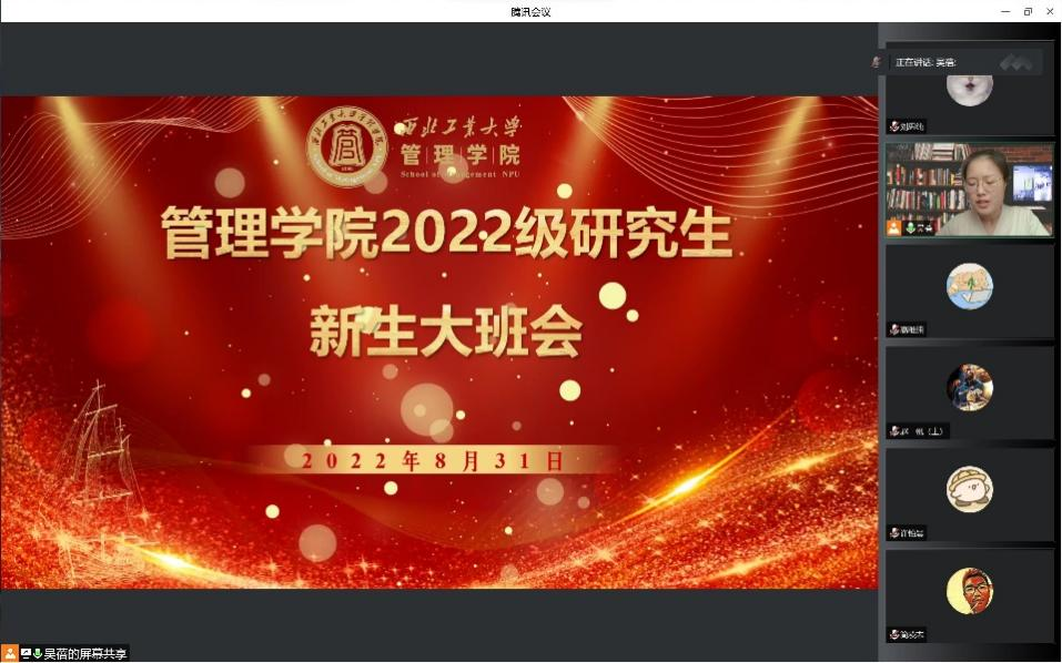 为了让新生提前适应研究生生活、融入到新的集体里面,2022年8月31日,新葡的京集团35222vip研究生辅导员吴蓓老师于腾讯会议举行了2022年新葡的京集团35222vip硕士研究生新生大班会,会议邀请了研究生教学管理办公室的陈斐然老师和牛佳乐老师出席。